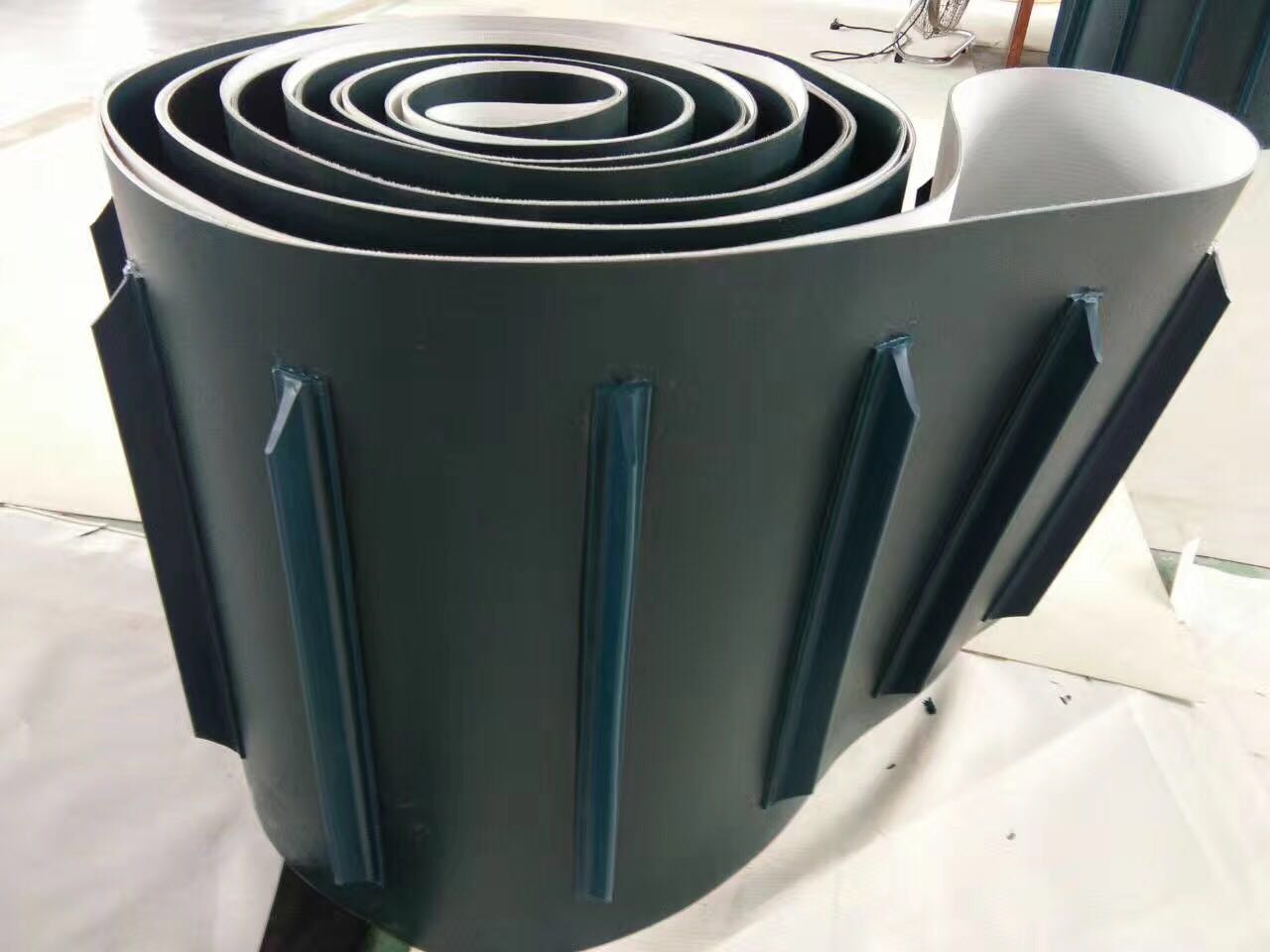 產(chǎn)品材料說明:裙邊擋板加工說明:輸送帶(裙邊擋板帶),擋邊起防止物料測滑撒落的作用。為便于轉(zhuǎn)彎,裙邊設(shè)計(jì)成波紋狀;橫隔板的作用是承托物料,為了實(shí)現(xiàn)大傾角輸送,采用T型TC型。檔邊和橫隔板是用二次硫化的方法與基帶連接的,具有很高的連接強(qiáng)度。用于輸送易散落的粉狀、粒狀、小塊狀、糊狀及液態(tài)狀物料。輸送帶材料:環(huán)保型材料:輸送帶的生產(chǎn)原材料,產(chǎn)品配方科學(xué)合理,符合食品衛(wèi)生標(biāo)準(zhǔn)可與食品直接接觸,色澤適度,無