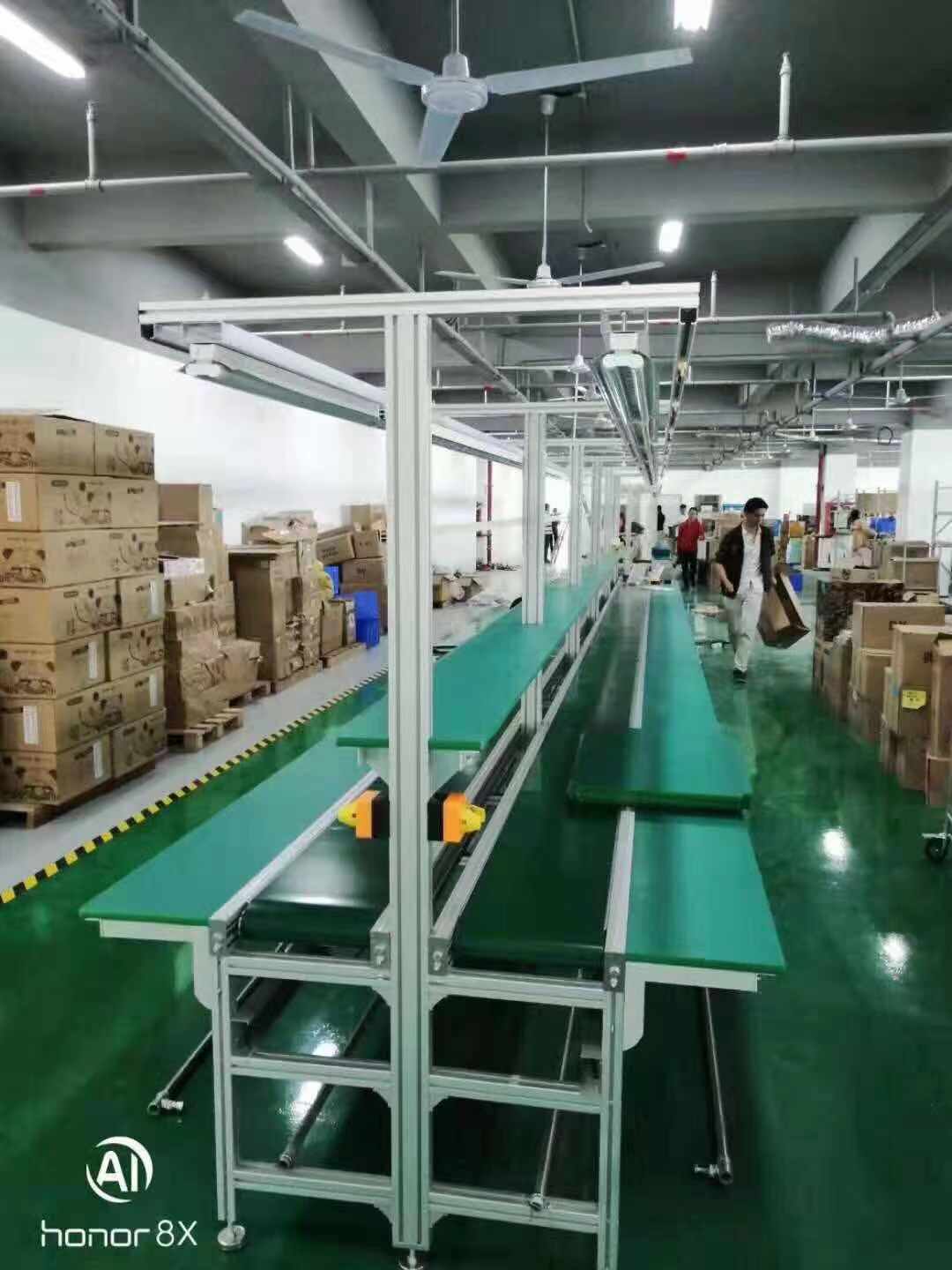 皮帶線可輸送的物料種類繁多,既可輸送各種散料,也可輸送各種紙箱、包裝袋等單件重量不大的件貨,用途廣泛。結(jié)構(gòu)形式多樣,有槽型皮帶機、平型皮帶機、爬坡皮帶機、側(cè)傾皮帶線、轉(zhuǎn)彎皮帶線等多種形式,輸送帶上還可増推板、側(cè)擋板、裙邊等附件、能滿足各種工藝要求。